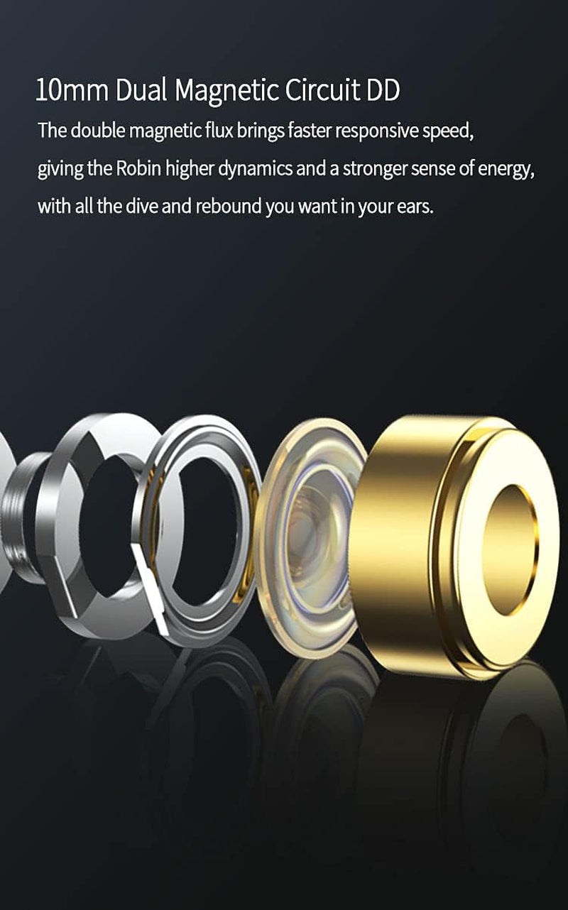 The double magnetic flux brings faster responsive speed, giving the Robin higher dynamics and a stronger sense of energy, with all the dive and rebound you want in your ears.